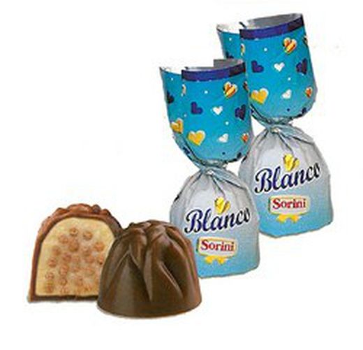 BOMBONES BLANCO LATTE E CEREALI son bombones de chocolate blanco relleno de crema de leche y cereales. Se venden los bombones envueltos individualmente en bolsa de 1Kg. Miden 4cm aprox cada bombón.