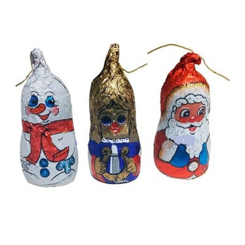 FIGURAS CHOCOLATE NAVIDAD 15Gr 50uds KIDZ son chocolatinas en forma muñeco de nieve, angel y Papa Noel ideales para colgar en el árbol de Navidad. Miden 6 cm de alto aprox y son 15gr cada uno. Se venden envueltos individualmente en un tarro de 50 unidades.